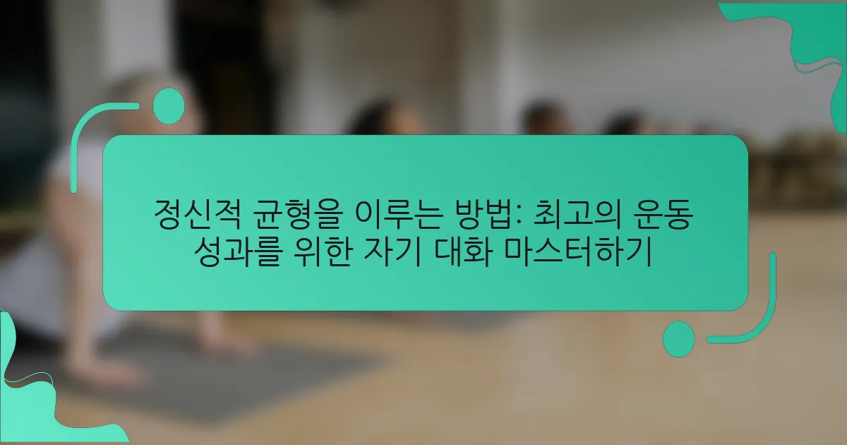 최고의 운동 성과를 위해 자기 대화를 마스터하기 위해서는 시각화, 부정적인 생각의 재구성, 긍정적 확언 사용과 같은 드문 전략에 집중해야 합니다. 이러한 기법은 정신적 균형을 향상시키고 긍정적인 사고 방식을 촉진합니다. 시각화는 성공적인 결과를 정신적으로 리허설하는 것으로, 자신감을 향상시킬 수 있습니다. 부정적인 생각의 재구성은 제한적인 믿음을 힘을 주는 진술로 변환하여 회복력을 촉진합니다. 긍정적 확언은 자기 신념을 강화하고 성장 마인드를 장려합니다. 이러한 전략을 일관되게 구현하면 성과와 전반적인 정신적 웰빙에서 상당한 개선을 이끌어낼 수 있습니다.