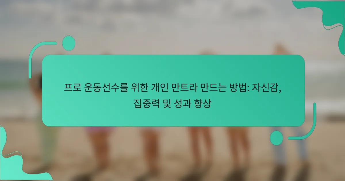 개인적인 만트라는 프로 운동선수의 자신감, 집중력 및 성과를 크게 향상시킬 수 있습니다. 이 기사는 핵심 가치를 식별하고, 간결한 진술을 작성하며, 훈련에 반복을 통합하여 효과적인 만트라를 만드는 방법을 탐구합니다. 주요 요소로는 감정적 공명, 명확성 및 개인화가 포함되어 최적의 영향을 미칩니다. 정기적인 연습과 반성은 경쟁 상황에서 정신적 회복력과 성과 결과를 향상시킵니다.