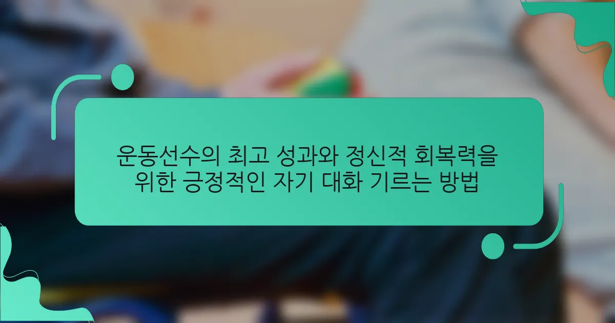 긍정적인 자기 대화를 기르는 것은 최고의 성과와 정신적 회복력을 추구하는 운동선수에게 필수적입니다. 이 글에서는 집중력을 높이고 불안을 줄이기 위한 확언, 시각화 및 마음챙김과 같은 전략을 탐구합니다. 또한 일반적인 자기 대화 실수에 대해 다루고 지지적인 환경을 조성하기 위한 기술을 제공합니다. 이러한 실천을 구현함으로써 운동선수는 정신적 틀을 개선하고 일관된 성공을 달성할 수 있습니다.