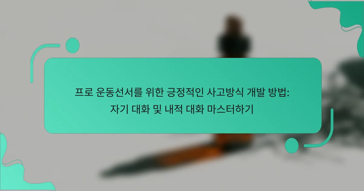 긍정적인 사고방식을 개발하는 것은 프로 운동선수들이 성과와 회복력을 향상시키는 데 매우 중요합니다. 이 글에서는 자신과의 대화가 자신감을 구축하는 데 미치는 역할, 효과적인 내적 대화를 위한 전략, 그리고 운동선수들이 저지르는 일반적인 실수에 대해 탐구합니다. 주요 기술로는 시각화, 긍정적인 확언, 그리고 건설적인 정신 상태를 조성하는 마음챙김 연습이 포함됩니다. 이러한 요소들을 마스터함으로써 운동선수들은 도전을 더 잘 극복하고 목표를 달성할 수 있습니다.