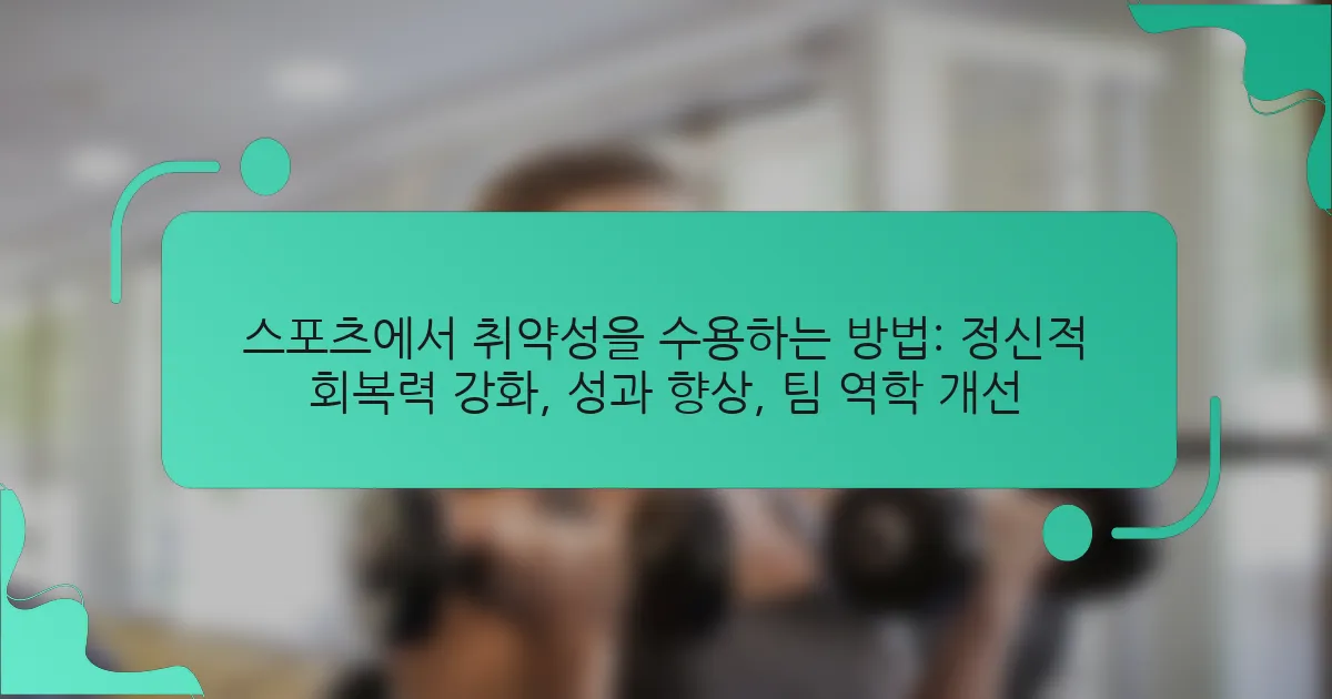 취약성을 수용하는 것은 스포츠에서 정신적 회복력과 팀 역학을 크게 향상시킬 수 있습니다. 이러한 접근 방식은 개방적인 의사소통과 감정적 투명성을 촉진하여 성과를 개선합니다. 선수들은 개인적인 도전을 공유하고 피드백을 요청함으로써 연결을 강화할 수 있습니다. 지원적인 환경을 조성함으로써 팀은 협업과 전반적인 성공을 높일 수 있습니다.