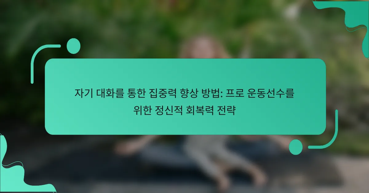 집중력을 향상시키는 것은 최상의 성과를 위해 노력하는 프로 운동선수에게 매우 중요합니다. 긍정적인 확언과 시각화 기법과 같은 자기 대화 전략은 정신적 회복력을 크게 향상시킵니다. 개인화된 접근 방식은 고압 상황에서 집중력을 최적화할 수 있습니다. 일반적인 실수를 피함으로써 운동선수는 자기 대화를 효과적으로 활용하여 집중력과 성과 결과를 높일 수 있습니다.