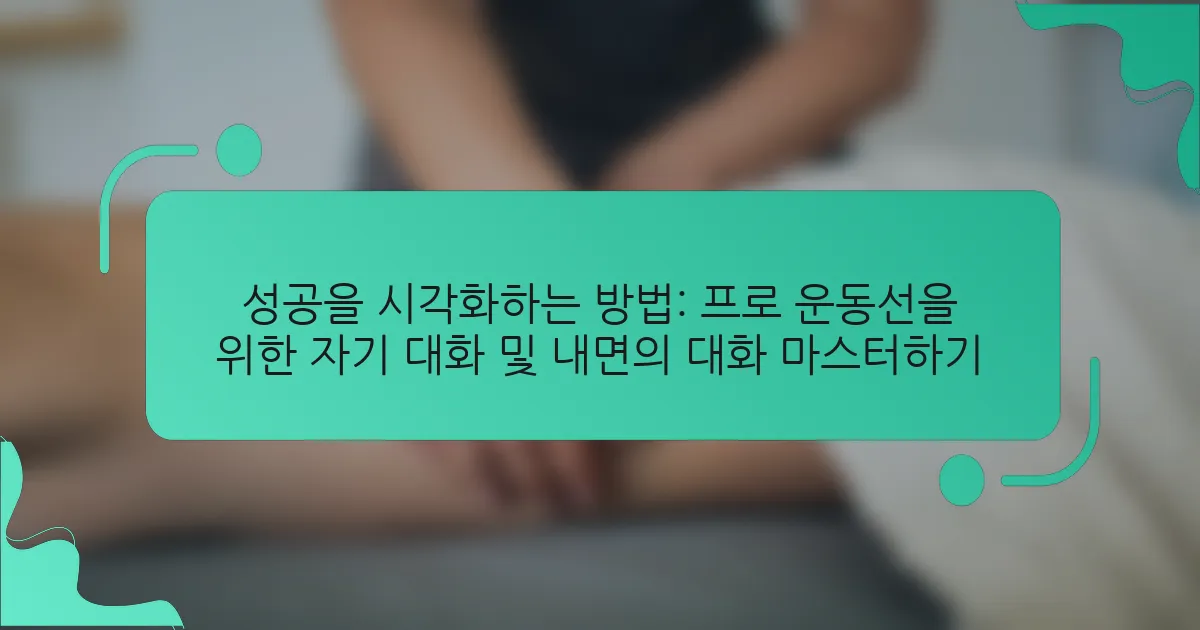 자기 대화와 시각화를 마스터하기 위해 프로 운동선수들은 긍정적인 확언과 상세한 정신 이미지를 중심으로 집중해야 합니다. 이러한 기술은 자신감과 명확성을 키워 성과를 향상시킵니다. 연구에 따르면 일관된 시각화에 참여하는 운동선수들은 대회에서 개선된 결과를 경험합니다. 예를 들어, 올림픽 운동선수들은 근육 기억과 정신적 준비를 강화하기 위해 자신의 루틴을 시각화하는 경우가 많습니다. 구조화된 자기 대화와 시각화를 통합하면 훈련과 대회 중 동기와 회복력을 크게 높일 수 있습니다.
