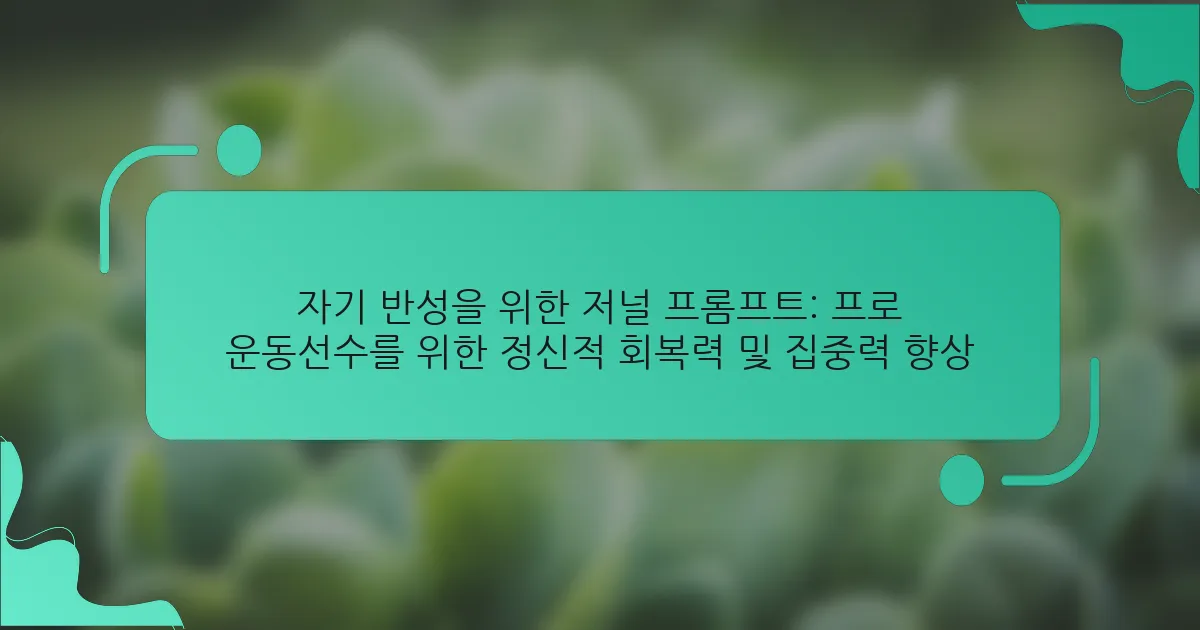 운동선수들은 목표 지향적인 저널 프롬프트를 통해 반성적 실천을 향상시킬 수 있습니다. 이러한 프롬프트는 자기 탐색을 촉진하여 정신적 회복력과 집중력에 도움을 줍니다.