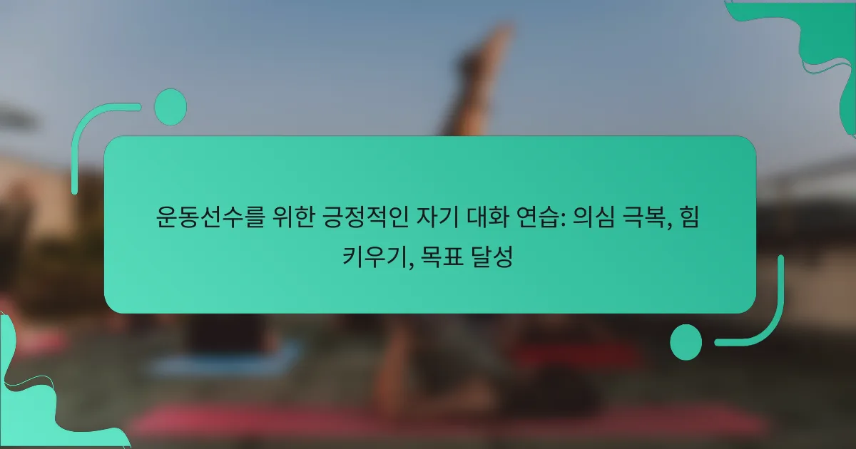 긍정적인 자기 대화는 운동선수가 성과와 정신적 회복력을 향상시키는 데 필수적입니다. 주요 원칙에는 긍정적인 확언에 집중하고, 시각화 기법을 사용하며, 부정적인 생각을 재구성하는 것이 포함됩니다. 긍정적인 확언은 자신감을 높이고 성장 마인드셋을 강화합니다. 시각화는 운동선수가 성공을 정신적으로 리허설할 수 있게 하여 동기와 집중력을 향상시킵니다. 부정적인 생각을 재구성하는 것은 의심을 건설적인 피드백으로 변화시켜 더 강한 정신 상태를 조성하는 데 도움이 됩니다. 이러한 연습은 운동선수가 도전을 극복하고 목표를 효과적으로 달성할 수 있도록 합니다.