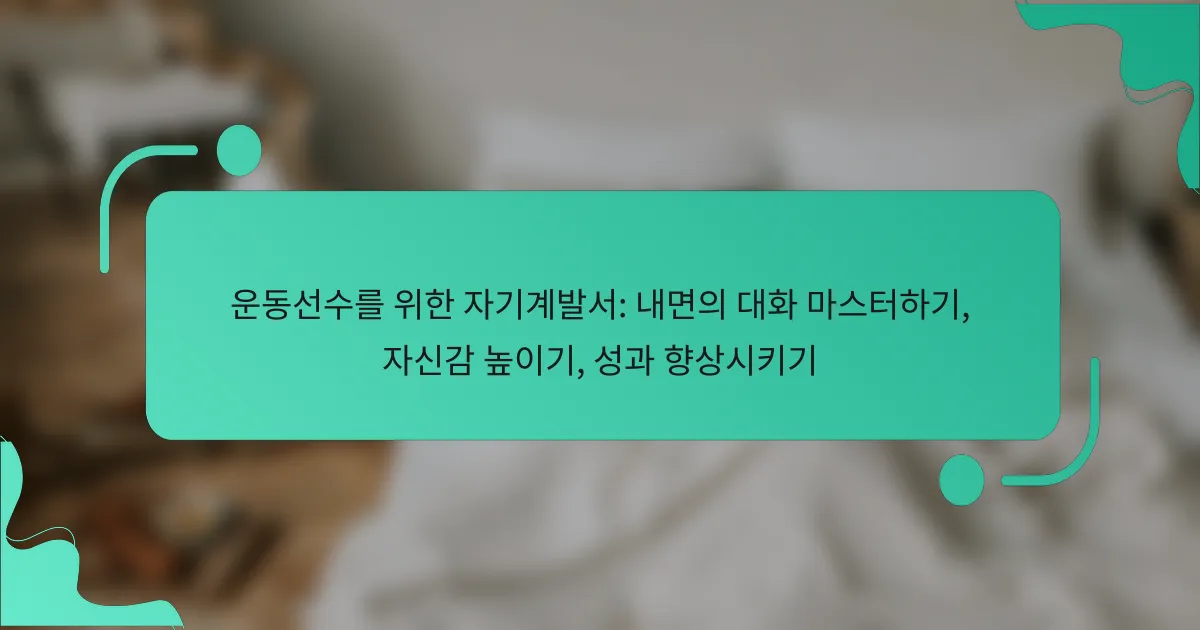 내적 대화를 마스터하는 것은 자신감을 높이고 성과를 향상시키고자 하는 운동선수에게 필수적입니다. 자기계발서에서는 집중력과 회복력을 개선하기 위해 시각화, 긍정적 확언, 마음챙김과 같은 효과적인 전략을 제공합니다. 이러한 자원은 성장 마인드셋과 감정 조절의 중요성을 강조하며, 운동선수가 대회에서 최적의 결과를 달성할 수 있도록 돕습니다. 이러한 기술을 통합함으로써 운동선수는 정신적 접근 방식을 변화시키고 경쟁 우위를 확보할 수 있습니다.