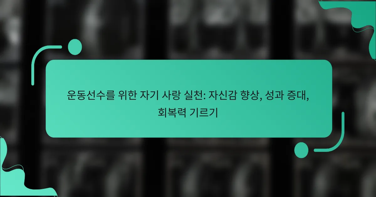 자기 사랑은 자신감, 회복력 및 전반적인 정신적 웰빙을 높여 운동선수의 성과를 크게 향상시킵니다. 강한 자기 사랑의 감각은 운동선수가 경쟁 중 집중력을 유지하는 데 도움을 주어 개선된 결과를 이끌어냅니다.